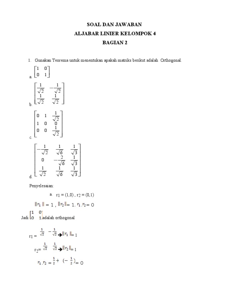 Jawaban Soal Kombinasi Linier Bergantung Linier Dan Bebas Linier