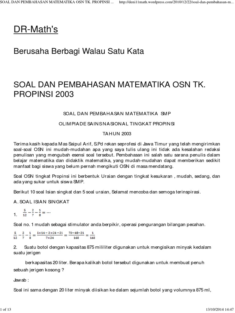 Soal Dan Pembahasan Matematika Osn Tk Pdf