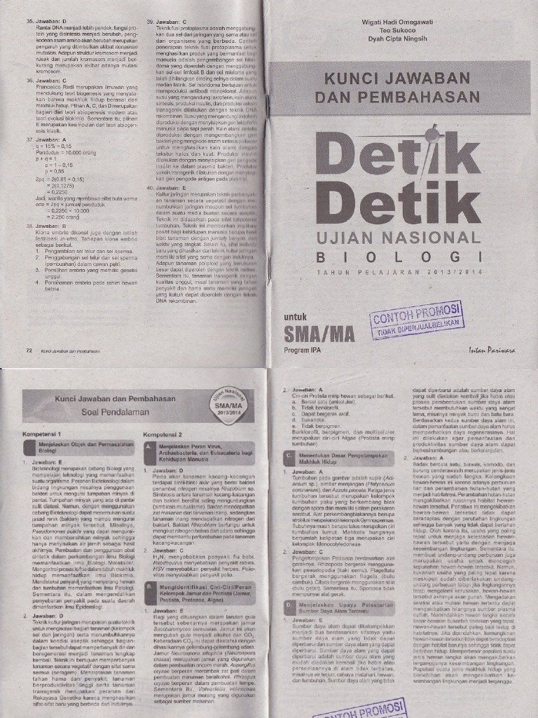 Pembahasan Buku Detik Detik Un Biologi Untuk Program Ipa